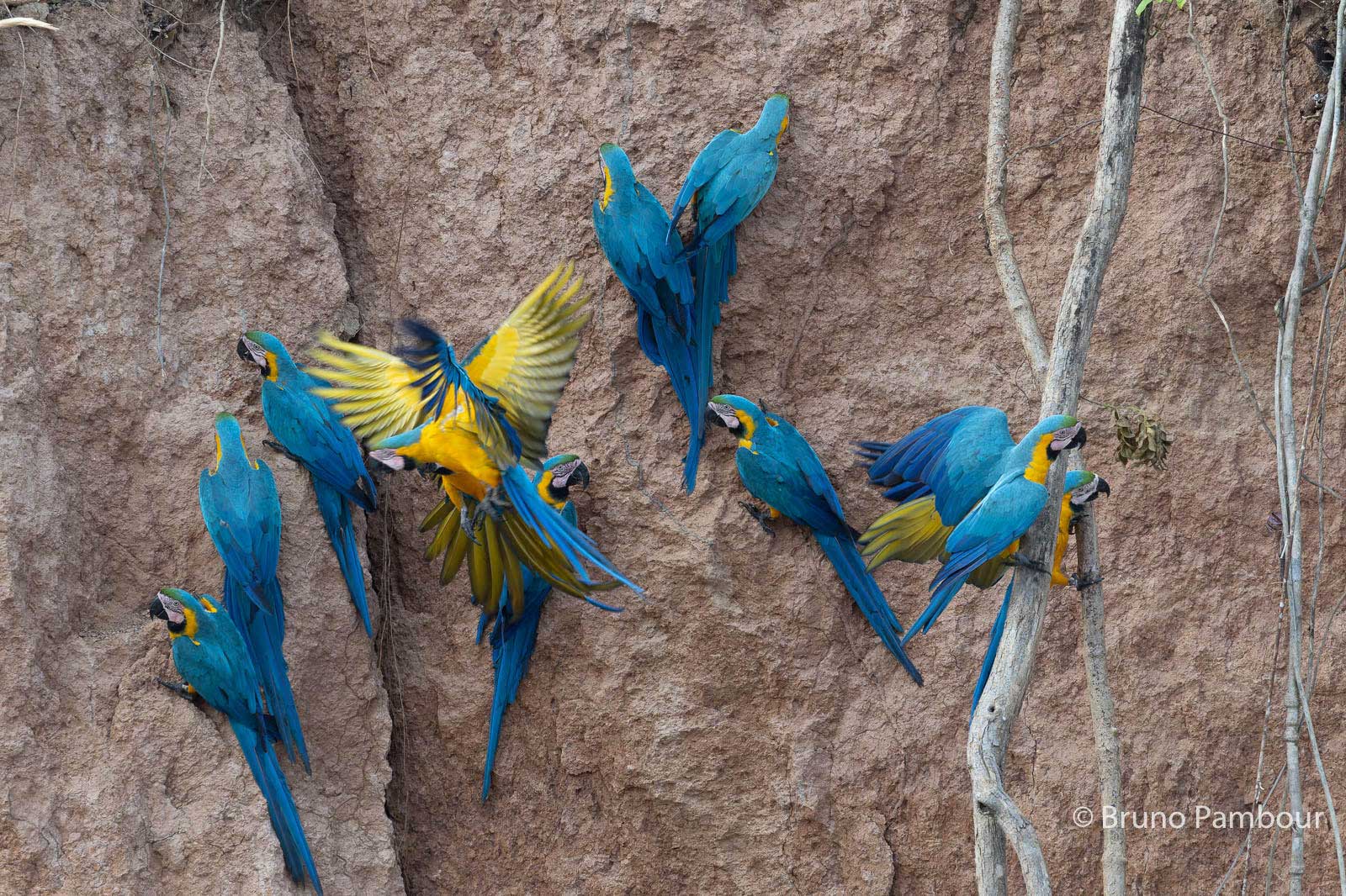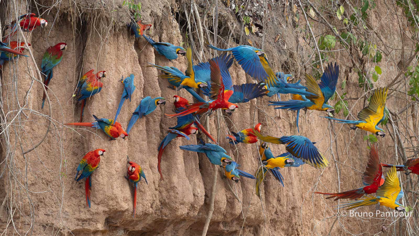 Enfin, le bassin amazonien avec la Réserve de Tambopata et ses célèbres « colpas », berges argileuses où viennent se nourrir 16 espèces de Perroquets dont 5 Aras (rouge, chloroptère, jaune et bleu, vert et macavouanne) à proximité de singes, tapirs, caïman et de centaines d’autres espèces.